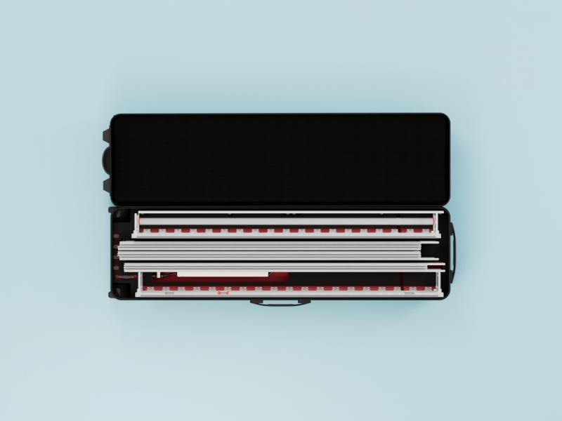 Die BIG LEDUP® STELE ist in einem handlichen ABS-Hartschalenkoffer mit nur 1,2 Metern Länge verpackt und lässt sich so problemlos in jedem PKW transportieren. Jedes Teil ist eindeutig nummeriert, sodass der richtige Platz im Hartschalenkoffer leicht gefunden werden kann. Für zusätzlichen Schutz ist der Koffer mit Schaumstoffeinlagen ausgestattet.
