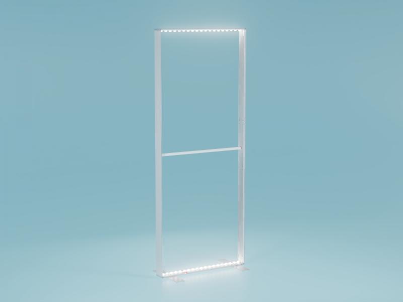 Dank des patentierten Verbindungssystems gleiten die präzise gefertigten Aluminiumprofile mühelos ineinander und sorgen für eine zuverlässige Verbindung sowie einen stabilen und eleganten Leuchtrahmen. Der Rahmen kann zudem digitale Drucke mit angenähten Silikonkedern an den Rändern aufnehmen – einfach, faltenfrei und unkompliziert.