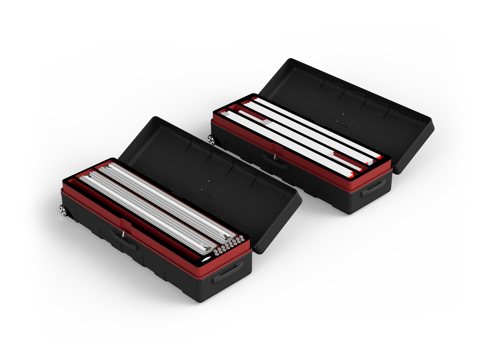 REAL BIG LEDUP® wird in zwei handlichen ABS-Hartschalenkoffern geliefert, die den Transport einfach und effizient machen. Jedes Teil ist eindeutig nummeriert, sodass der richtige Platz im Hartschalenkoffer leicht gefunden werden kann. Für zusätzlichen Schutz ist der Koffer mit Schaumstoffeinlagen ausgestattet.