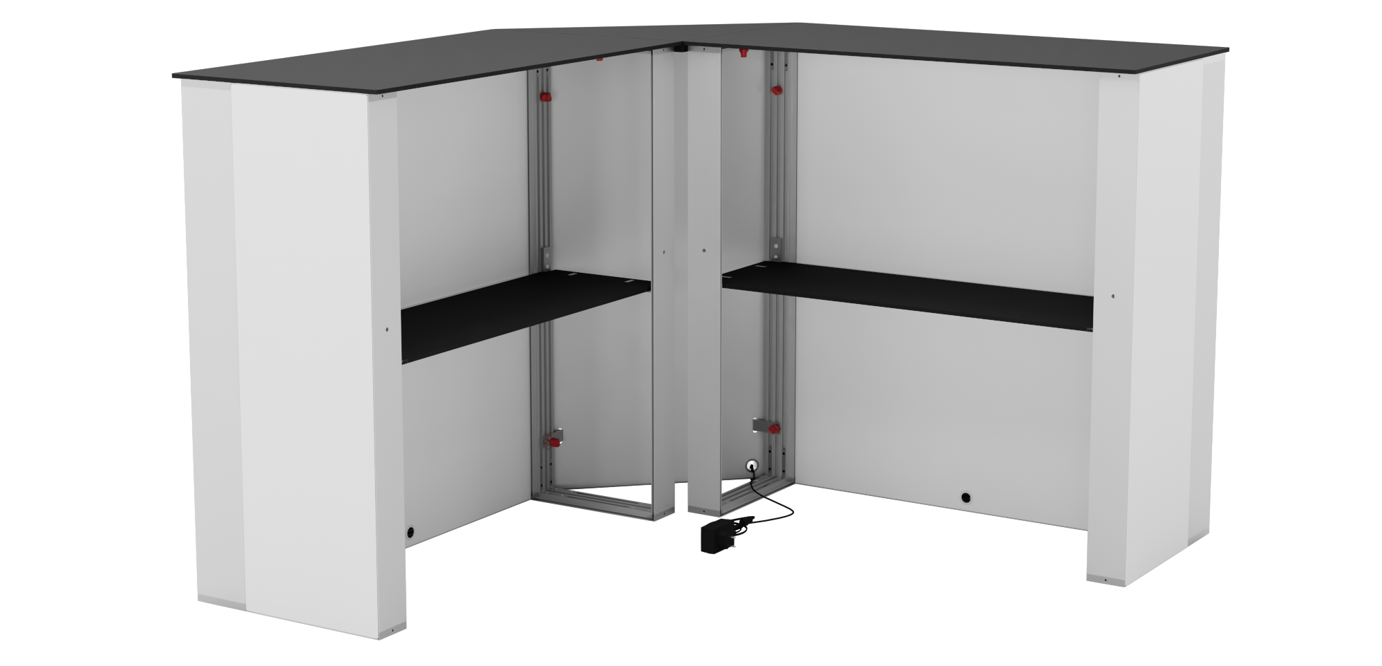 Mit dem Counter One Corner können Sie zwei Counter One bequem miteinander verbinden und eine beleuchtete Ecke schaffen, die Ihren Messestand noch ansprechender gestaltet. Dieses Zubehör erweitert Ihre Gestaltungsmöglichkeiten und sorgt für ein modernes, hochwertiges Design.