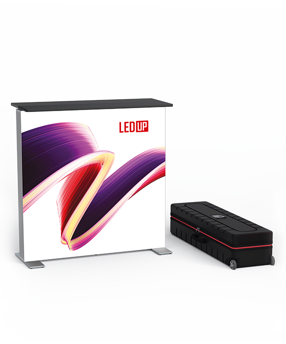 Dieses elegante System ist beidseitig beleuchtet, in wenigen Minuten aufgebaut und stabil genug, um Ihren Anforderungen gerecht zu werden. Auch hier ermöglicht unser patentiertes LEDUP-System den Aufbau ohne Werkzeug. Eine Gesamtstromaufnahme von 30 Watt rundet das Paket perfekt ab.