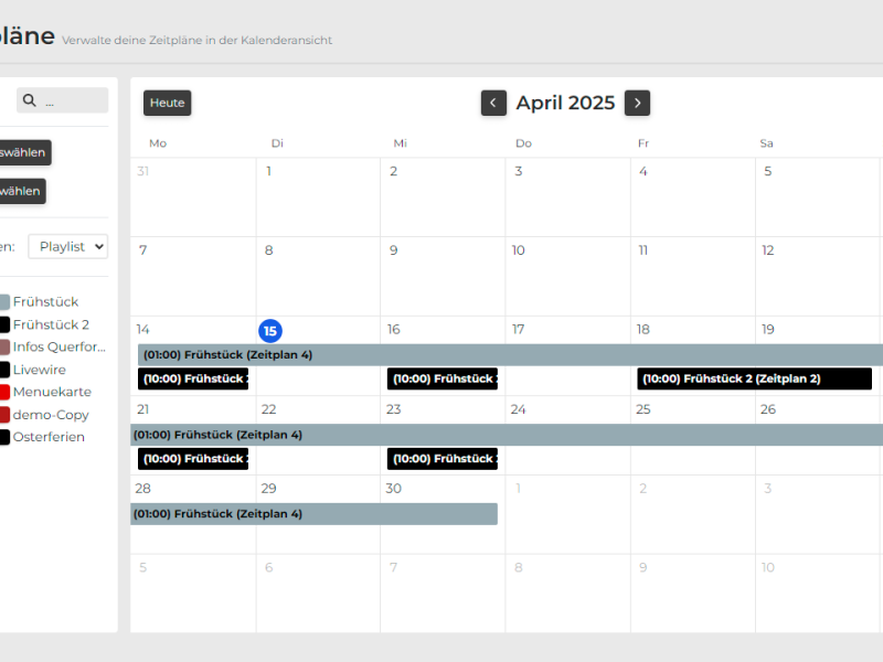 • Vorab-Festlegung von Dauer, Start- und Endzeiten der Inhalte