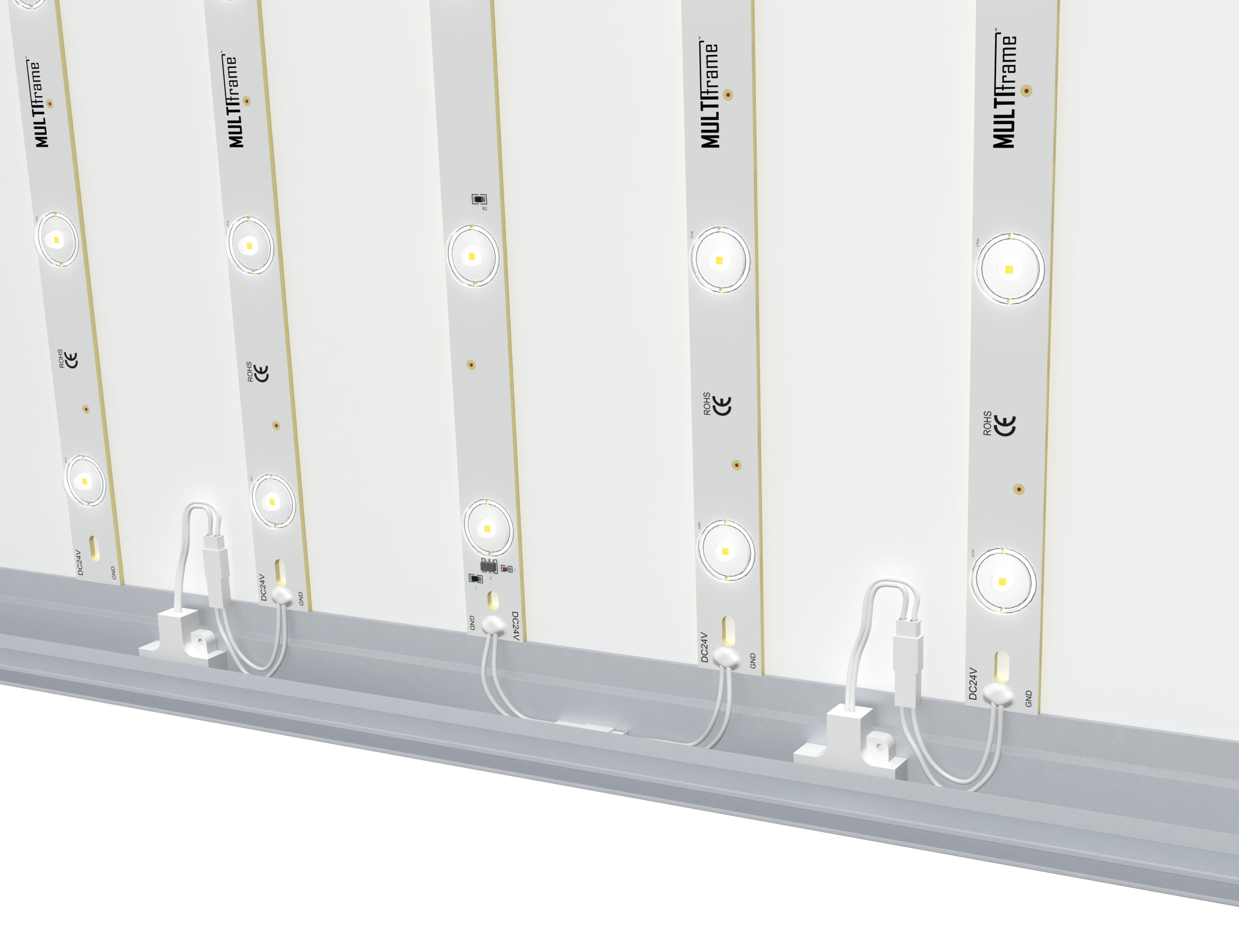 Durch die Verwendung hochwertiger OSRAM-LED-Technologie in Kombination mit optimal abgestimmten Linsen werden folgende Ergebnisse erzielt: ca. 7000 lm, ca. 45 Watt/m², ca. 1600 cd, Farbtemperatur 6000 Kelvin. Diese Daten zeigen, dass die Multi Frame Super Slim 35/65 Rahmen, die primär zur Hintergrundbeleuchtung von Bildern verwendet werden, auch allein zur Beleuchtung eingesetzt werden können. Das modulare Design der LED-Module ermöglicht es, nahezu jede Rahmengröße gleichmäßig und hell ohne Hotspots zu beleuchten.