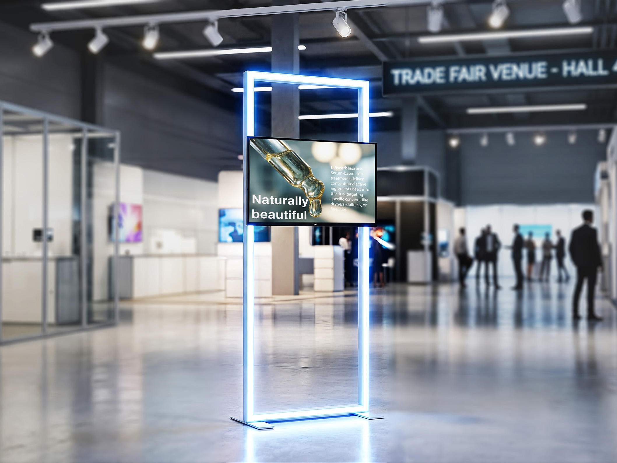 Mit LINEUP Stele setzt du Markenauftritte klar und wirkungsvoll in Szene. Klar im Design, durchdacht in der Funktion und flexibel im Einsatz.
