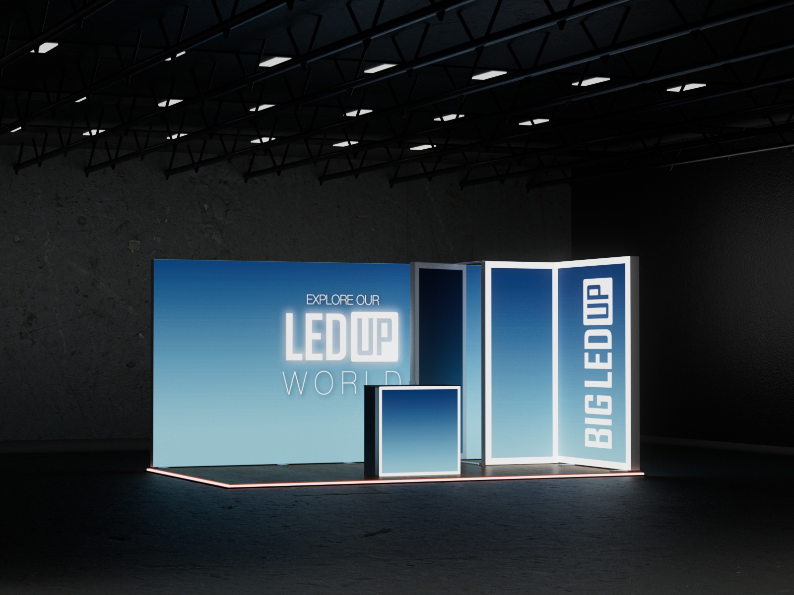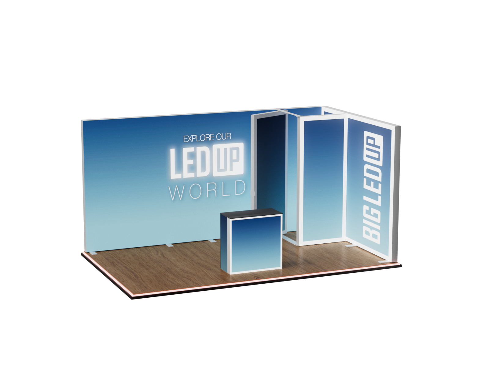 Dieses Set ist mit einer Grundfläche von 5x3 m und einer Höhe von 248 cm, sowie einem Counter ONE und einer Koje, ist für diejenigen gedacht, die einen beeindruckenden und professionellen Messestand benötigen. Dieses modulare Set bietet maximale Flexibilität und ermöglicht es Ihnen, den Aufbau an Ihre spezifischen Event-Anforderungen anzupassen. Ob für Messen, Konferenzen oder jede andere Promotion-Veranstaltung – das BIG LEDUP Set 5x3 DEVON sorgt dafür, dass Ihre Marke durch Klarheit und Stil hervorsticht.