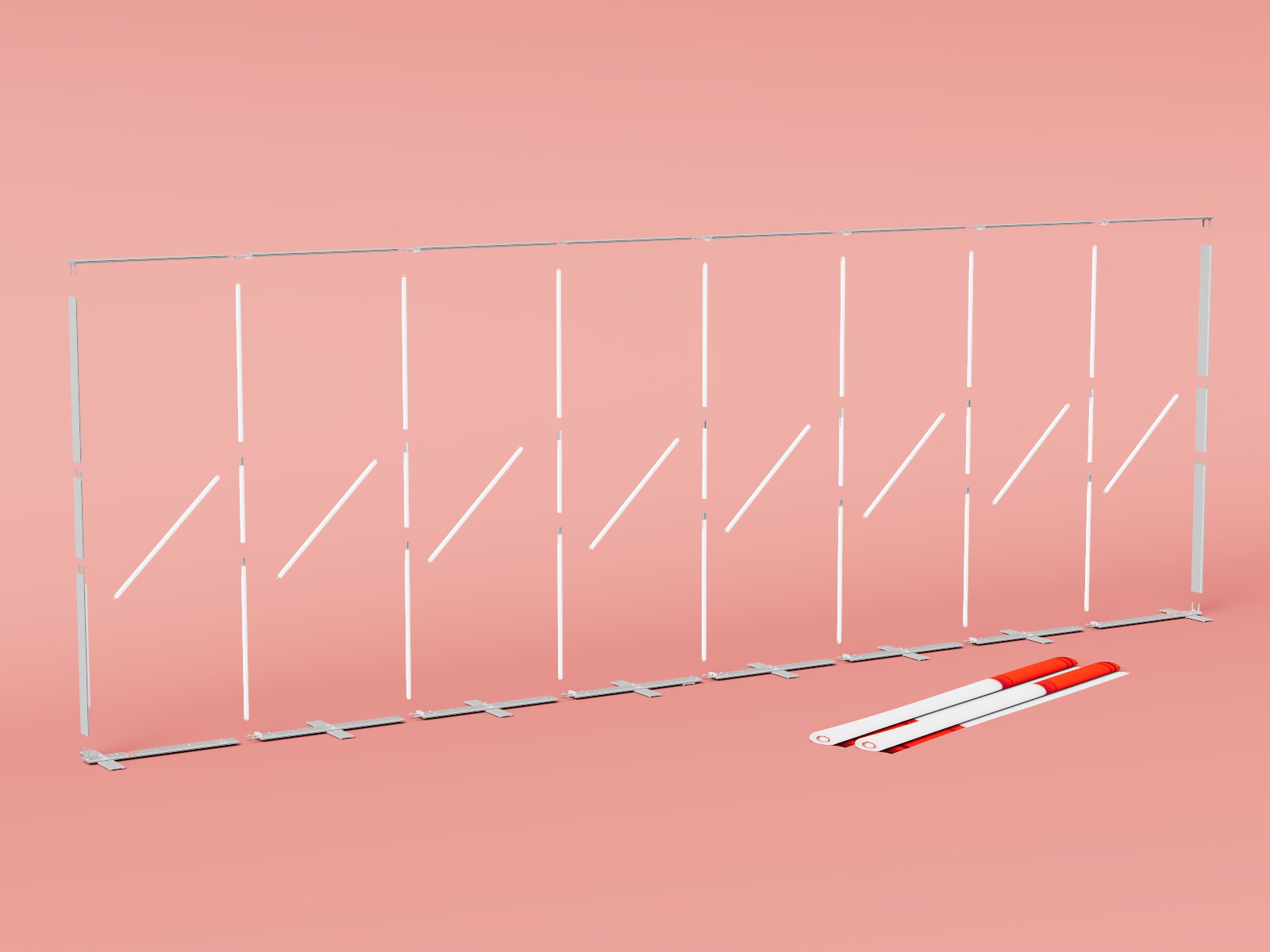 Simply remove the individual components from the handy ABS travel case, assemble them (no tools needed), screw on the feet – and you’re ready to go! Digital prints with sewn silicone welts around the edges can be easily attached to the system, are user-friendly in handling and can be changed independently any time.