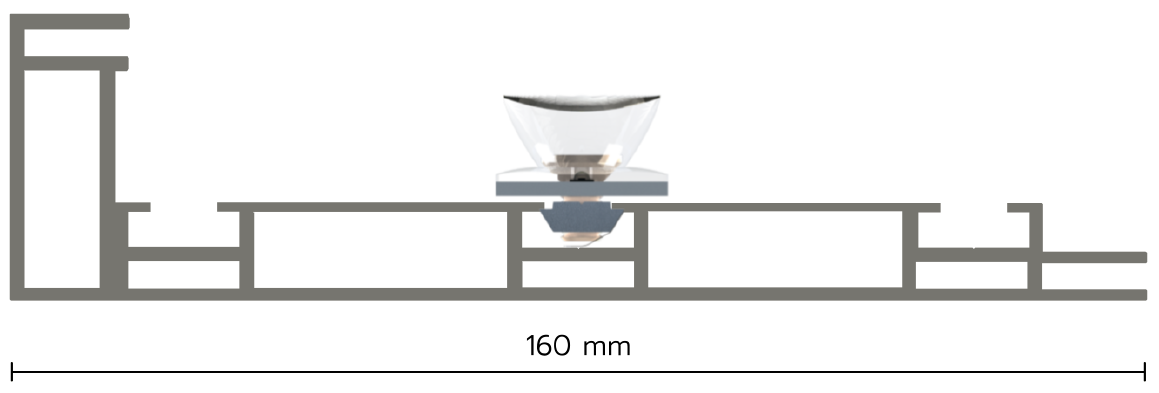 One profile – profile dimension (depth) 160 mm / 6.3” is used for this display frame.