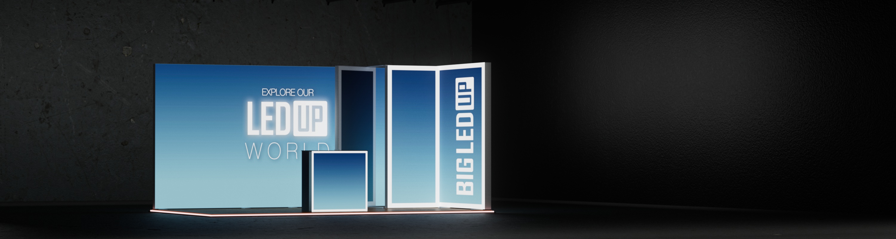 With a footprint of 5x3 m and a height of 248 cm, as well as a Counter ONE and a booth, this set is designed for those who need an impressive and professional exhibition stand. This modular set offers maximum flexibility and allows you to adapt the setup to your specific event requirements. Whether for trade fairs, conferences or any other promotional event - the BIG LEDUP Set 5x3 DEVON ensures that your brand stands out with clarity and style.